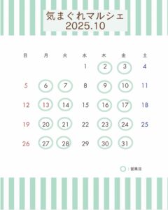 <気まぐれマルシェ 2025年10月の営業日のお知らせ>