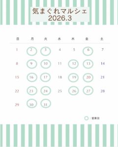 <気まぐれマルシェ 2026年3月の営業日のお知らせ>